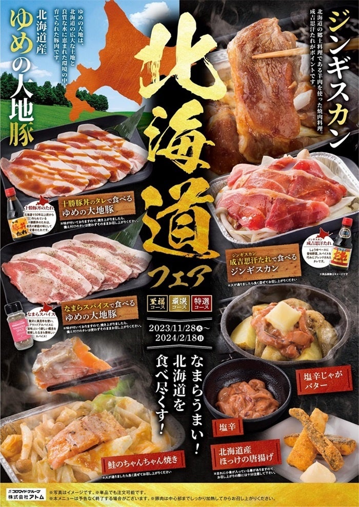 コロワイドグループの株式会社アトム(本社:神奈川県横浜市、代表取締役社長:小島保幸)は 「カルビ大将・がんこ炎」各店舗にて2023年11月28日(火)より「北海道フェア」を開始いたします。