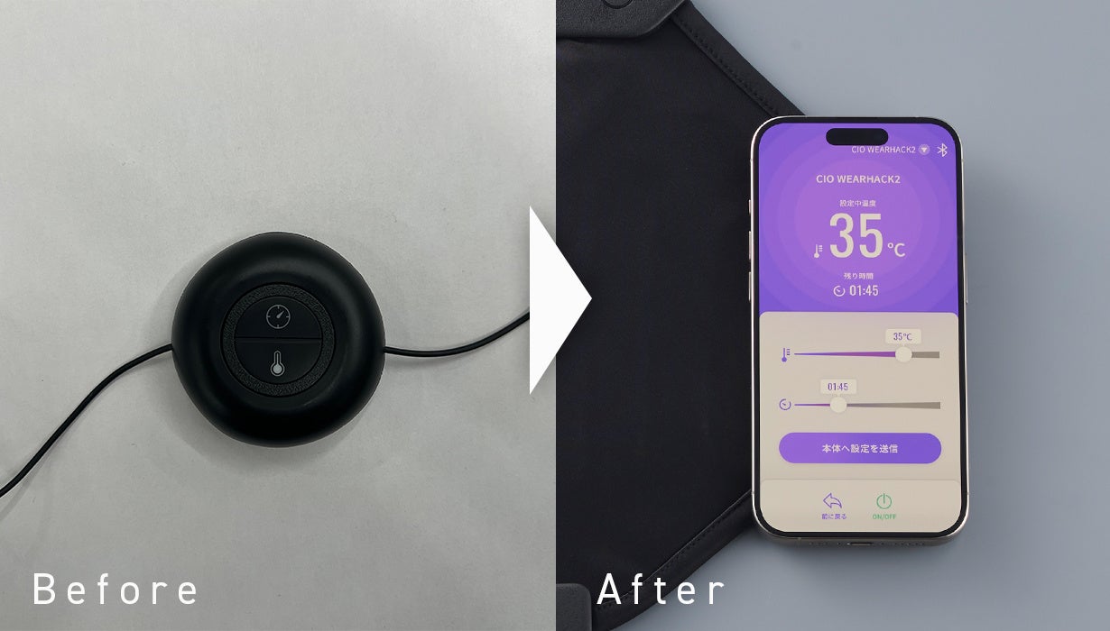 アプリ操作に進化したことで、上着の前を開け、リモコンを操作する必要が無くなりました。