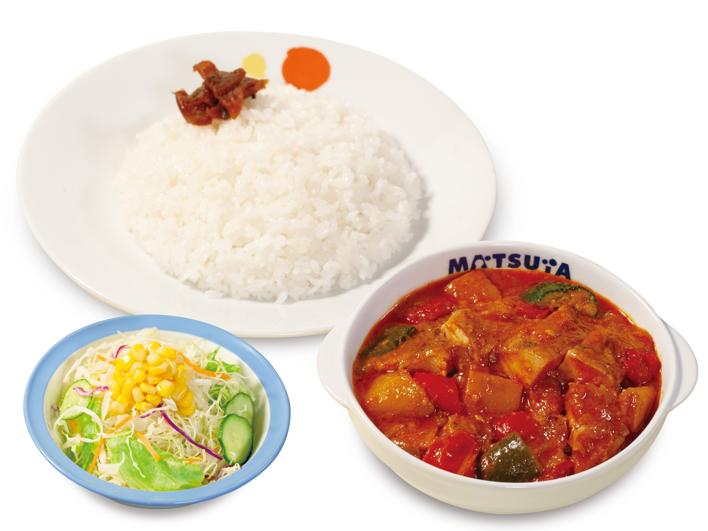 松屋こだわりのスパイスカレーが登場!ごろっと野菜の南欧風トマト煮込みカレーで、夏の抜けない疲れを吹き飛ばす 9月20日(火)午前10時~ 販売開始