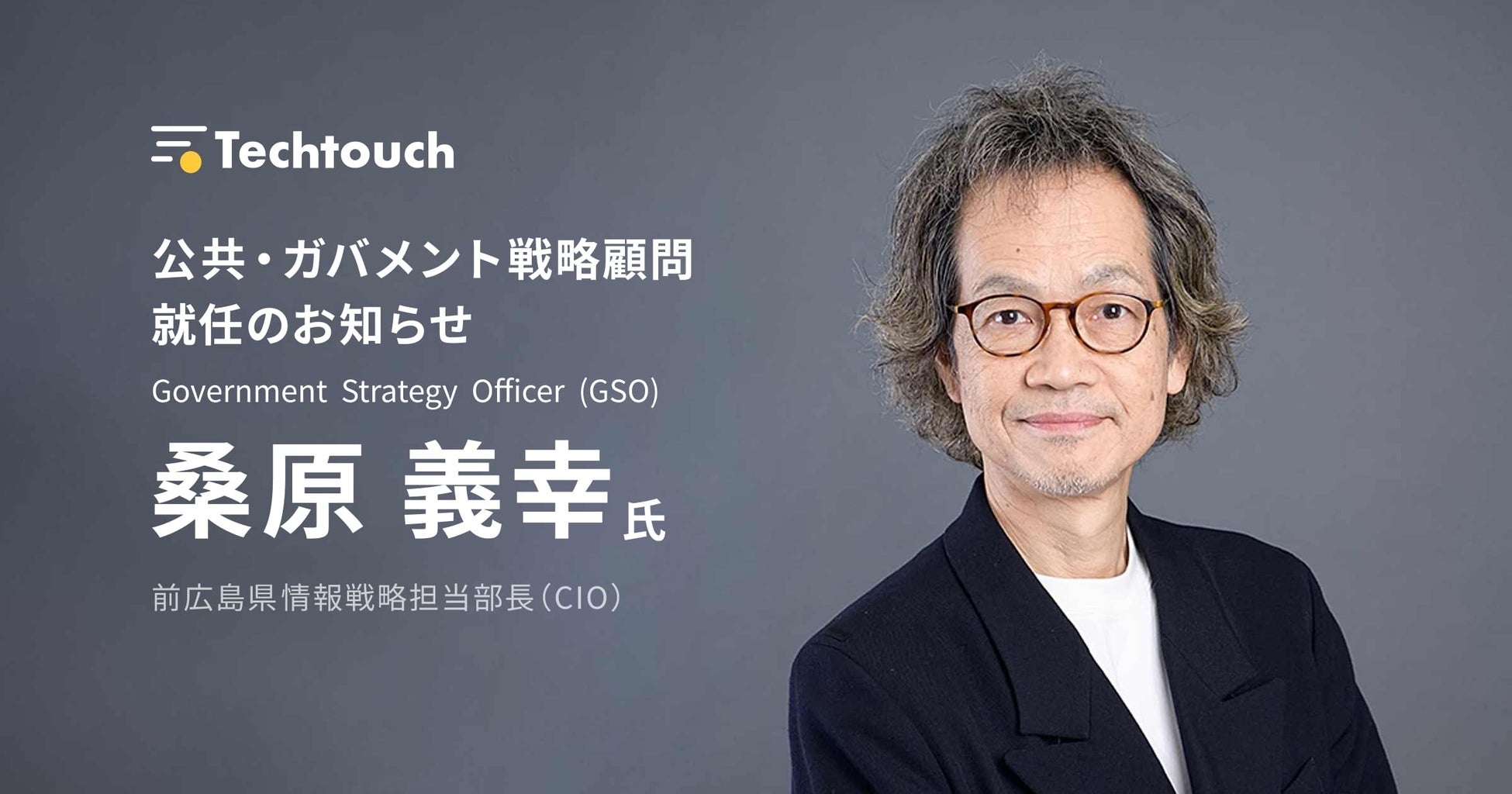 テックタッチ株式会社は、2026年2月1日付で、前広島県情報戦略担当部長(CIO)として行政DXを長年にわたり牽引してきた桑原義幸氏を「公共・ガバメント戦略顧問(Government Strategy Officer (GSO)」に招聘しました。