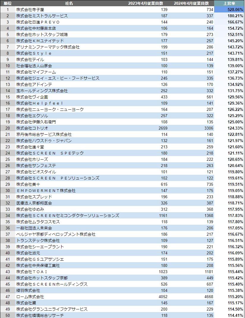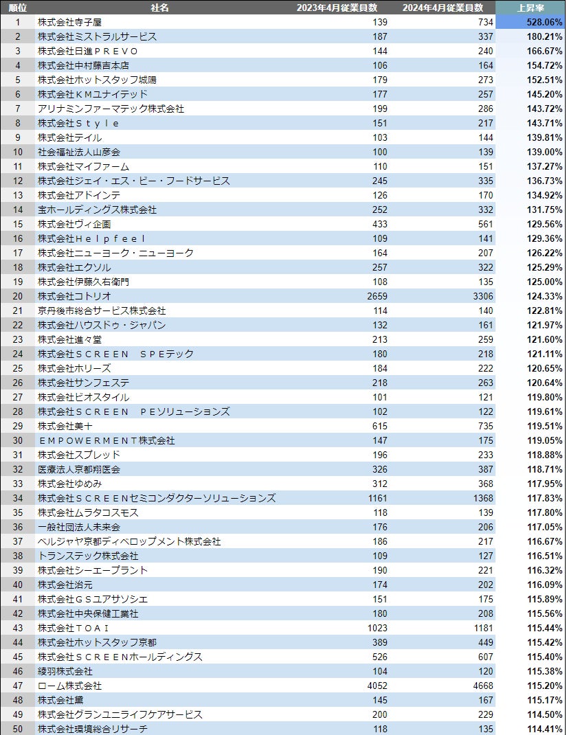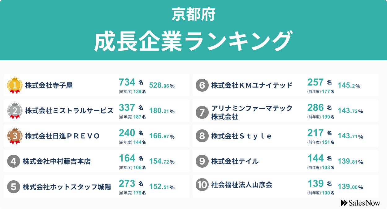 【京都府】成長企業ランキングTOP50!/SalesNow DBレポート