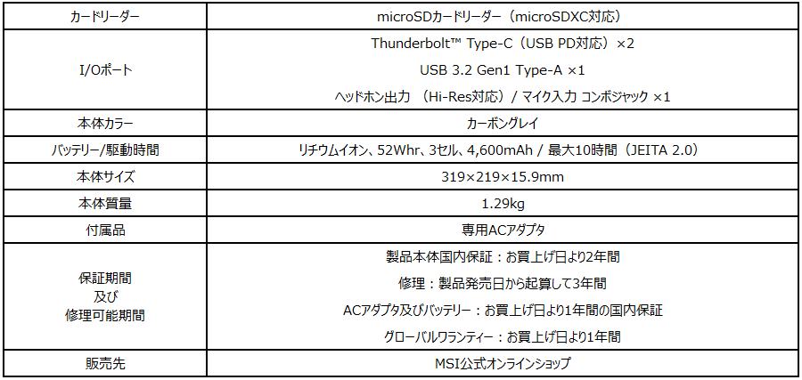 ・MSI公式オンラインショップ販売ページ:https://jpstore.msi.com/shopdetail/000000000291/