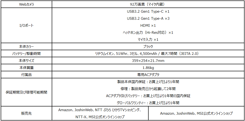 ・MSI公式オンラインショップ販売ページ:https://jpstore.msi.com/shopdetail/000000000292/
