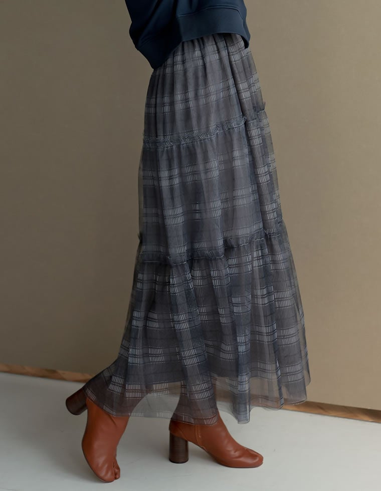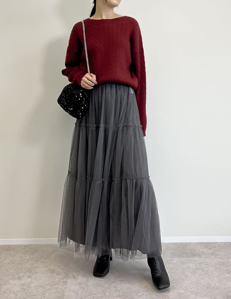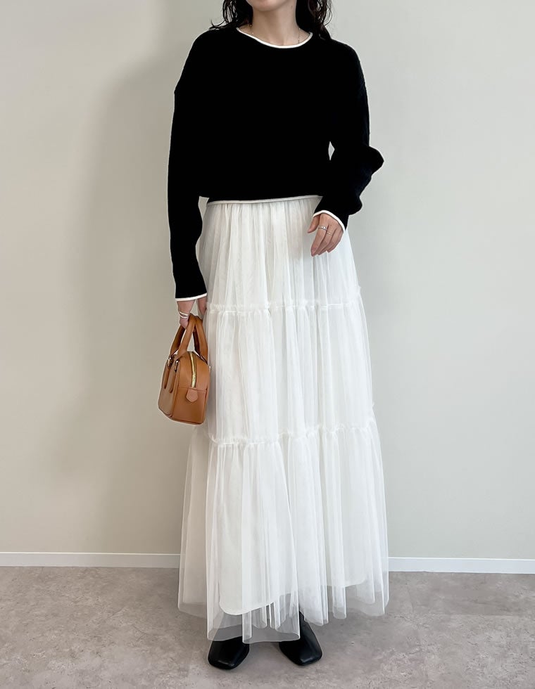 商品名:2WAYペチコート付きティアードフリルチュールボリュームスカート