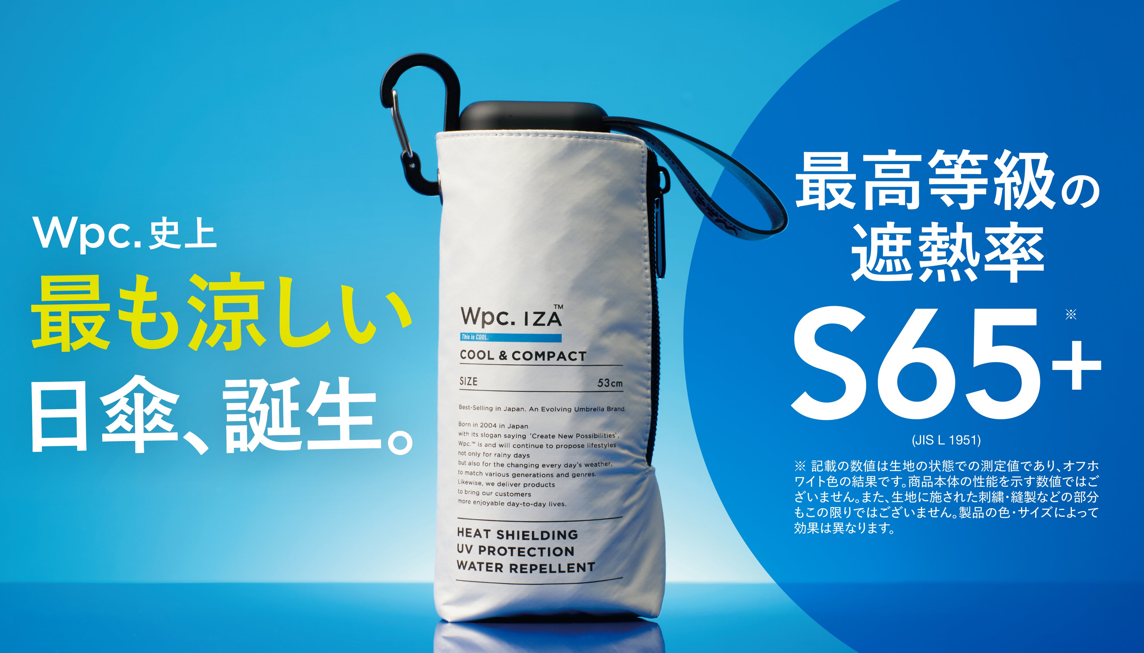 株式会社ワールドパーティー(本社:大阪市住吉区、代表取締役社長:冨田智夫)が展開する男の晴雨兼用傘「Wpc. IZA(ダブリュピーシーイーザ)」は、従来の機能に加えて、最高等級の遮熱率「S65+」*3生地を採用した新モデル「COOL & COMPACT」を、Wpc.直営店舗、Wpc. ONLINE STORE、ハンズ、ロフトにて2026年4月1日(水)より先行発売いたします。一般発売は7月より開始予定*4です。