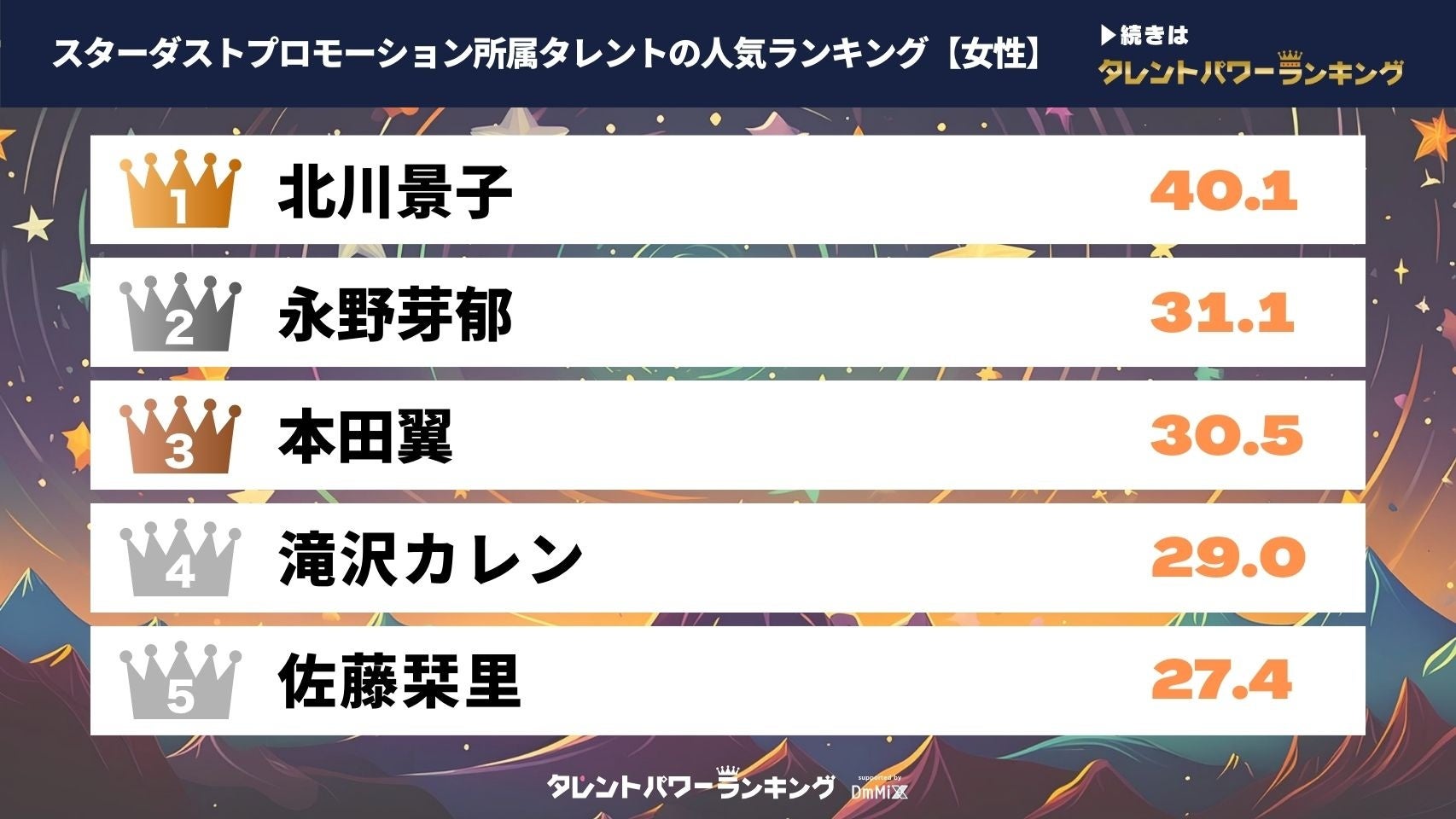 今回、そんなスターダストプロモーションに所属しているタレントに焦点を当て、タレントパワーランキングで検証しました。