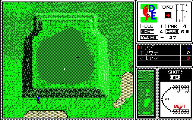 本作は1989年にリリースされたゴルフゲームです。このゲームでは、全12コースを舞台に「PLAY GOLF」と「GOLF LIFE」という2種類のモードが楽しめます。前者の「PLAY GOLF」では純粋にゴルフをプレイでき、後者の「GOLF LIFE」ではゴルファーとしての人生を体験できます。ちなみに操作方法はタイミングに合わせてスペースキーを押すというオーソドックスなスタイルを採用しており、誰でも直感的にプレイできます。