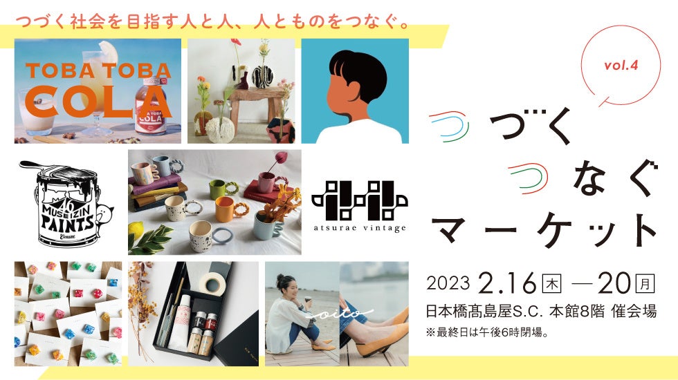 【日本橋高島屋】環境にやさしいものづくりやアートワークを通し人と人をつなげ、つづく社会の実現を目指し活動するクリエイターらに焦点を当てたインベント「つづくつなぐマーケット」を2月16日(水)から開催!