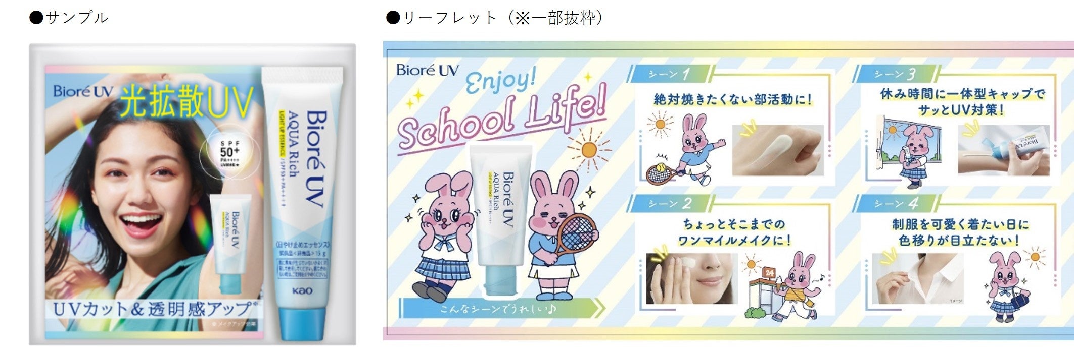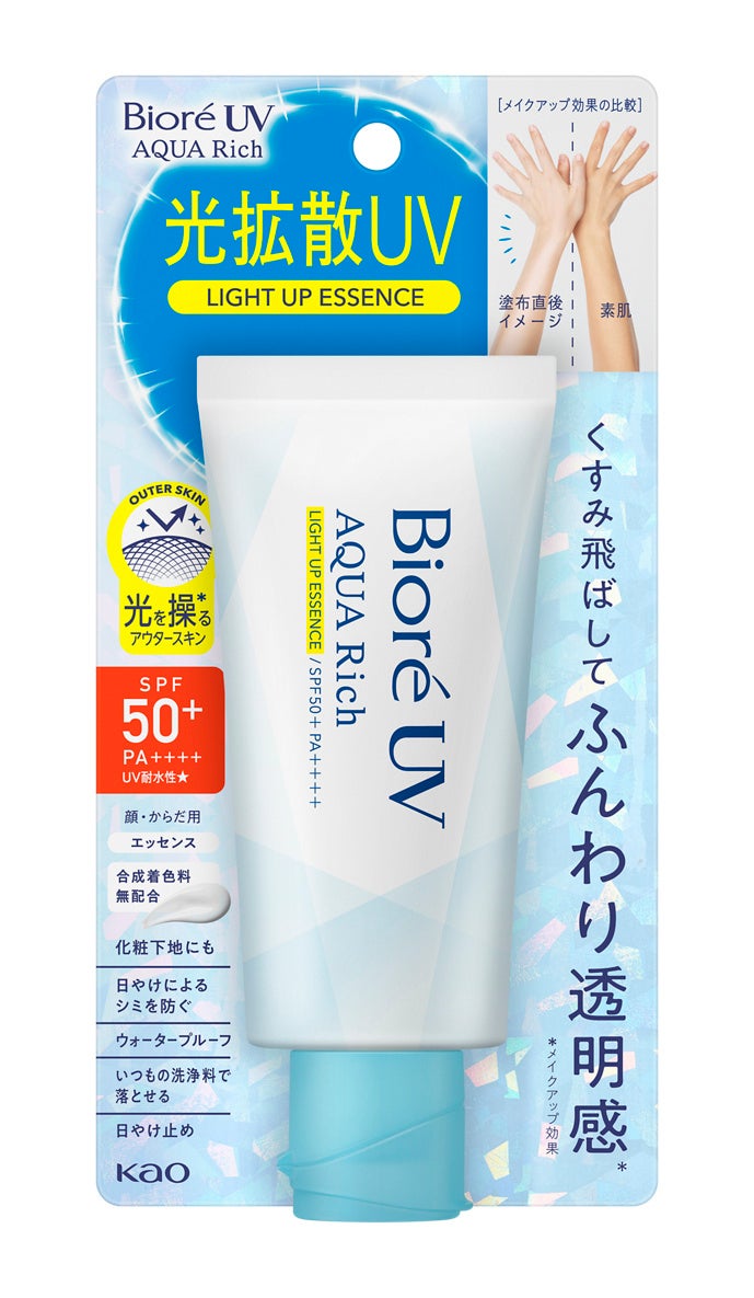 紫外線防御力が高くウォータープルーフでありながら、肌の透明感もアップ*1することで、10代から高い支持を得ている『ビオレUV アクアリッチ ライトアップエッセンス』(通称:光拡散UV)を提供いたします。