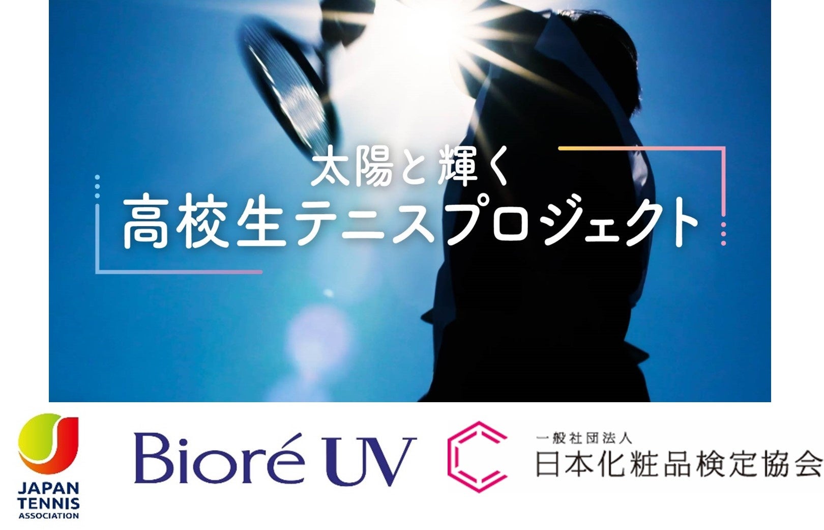 そのような活動の中で、「ビオレUV」は、部活動や体育授業などで、特に屋外にいる時間が長い高校生に着目。高校生が太陽の下で笑顔でテニスを楽しめるように、日本テニス協会、日本化粧品検定協会とともに「太陽と輝く、高校生テニスプロジェクト」を開始します。各種大会やスクール、サンプリングなどのイベントを通じて、日やけ対策の重要性や日やけ止めの適切な使い方を紹介する活動を行っていきます。