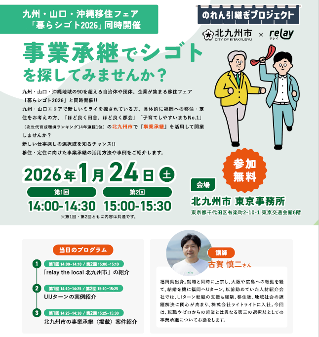 UIJターンなど北九州市への移住・定住を考えている方へ 北九州市事業承継セミナーを東京で開催!【事前申込み不要】