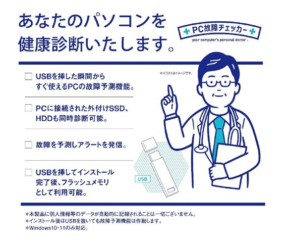 「PC故障チェッカー」は、簡単な操作でお客様のデータ消失や、修理・データ復旧による経済的リスクを未然に防ぐソフトウエアです。