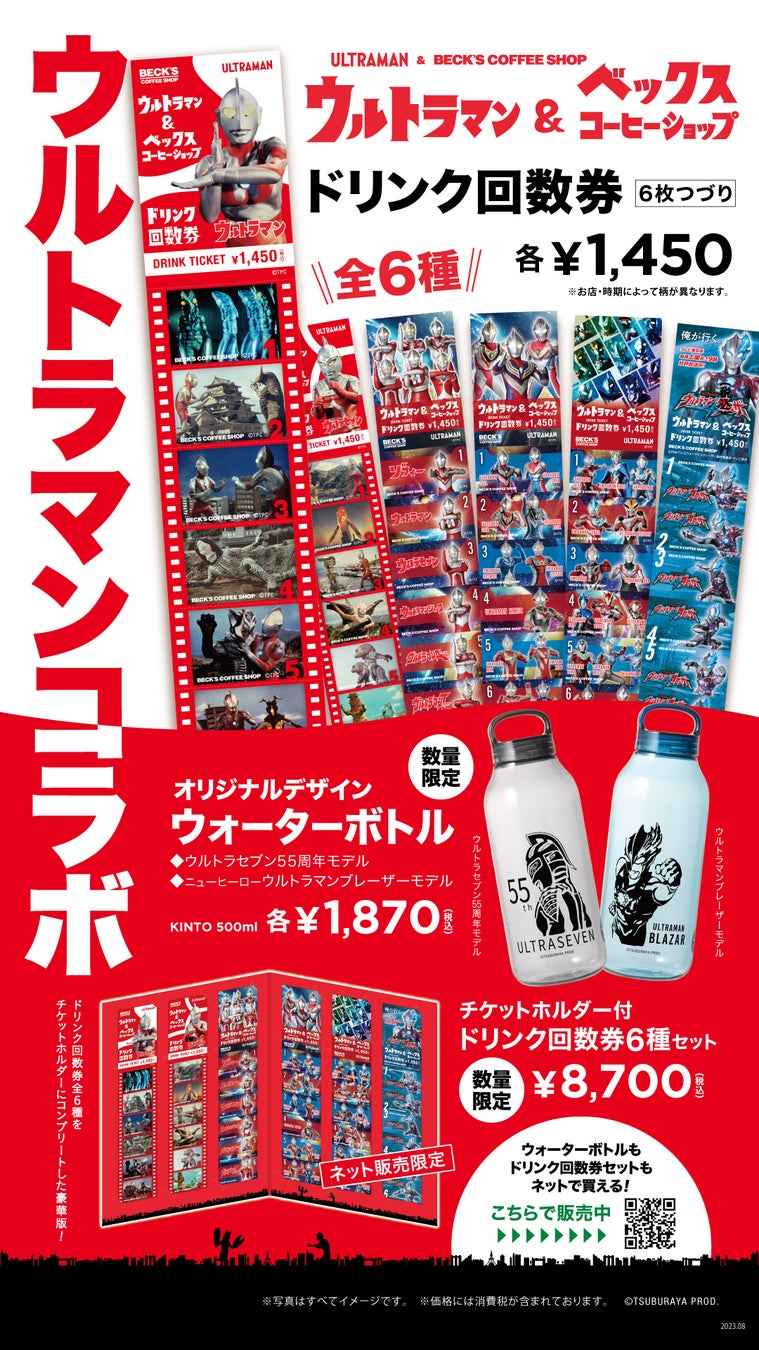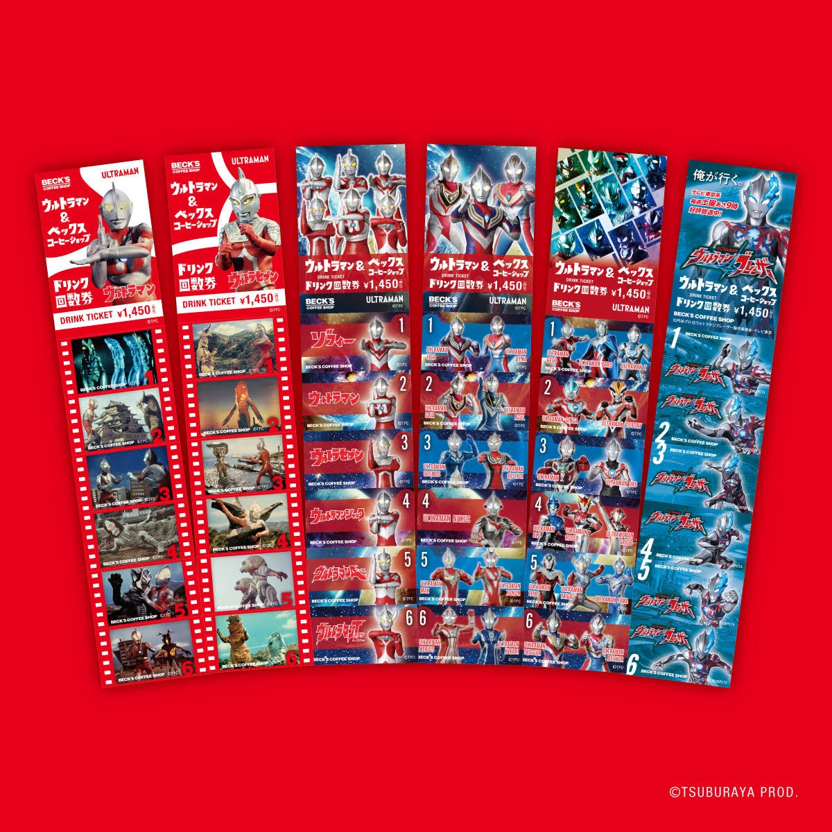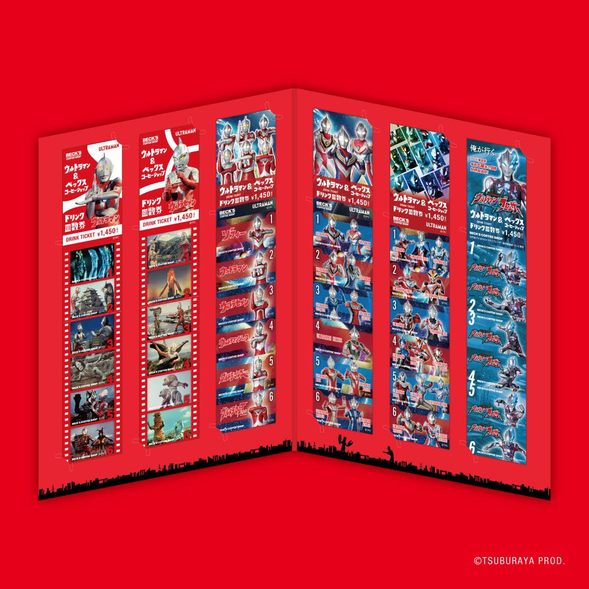 ベックスコーヒーショップ全店舗で使える6枚つづりのドリンク回数券。今回のコラボを記念して、ウルトラマンのデザインのドリンク回数券を企画。往年の名シーンがデザインされた回数券の他、最新ヒーロー『ウルトラマンブレーザー』がデザインされたもの等全6種類。 5杯分のお値段で6杯分楽しめる価格設定です。