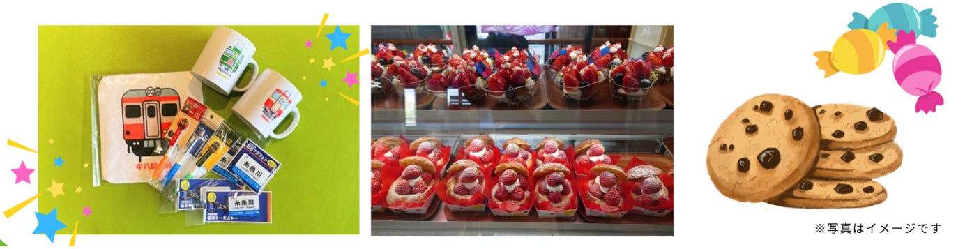 糸魚川市内のスイーツなど美味しいものが大集合!市制20周年と糸魚川駅開業10周年記念のお祝いメニューも登場します。さらに、北陸新幹線敦賀駅開業1周年と今年開催の大阪・関西万博を祝し、糸魚川駅~大阪駅を模した大型ジオラマを展示します。