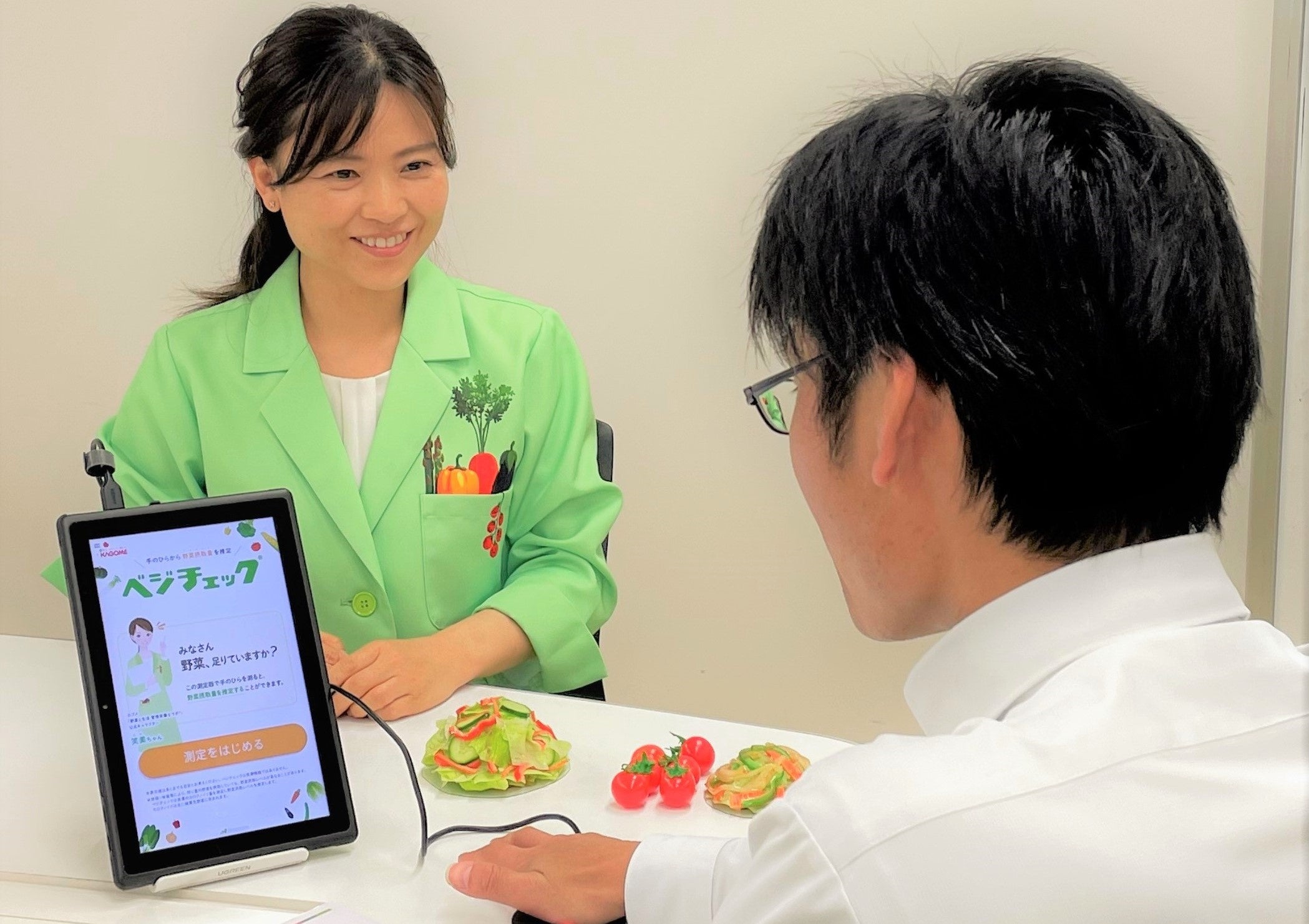 対象者一人ひとりに寄り添い、健康診断結果と連動した個別指導を行うことで、日々の食事に野菜を取り入れるための工夫や、生活習慣の改善に向けたポイントについて、マンツーマンで助言しています。