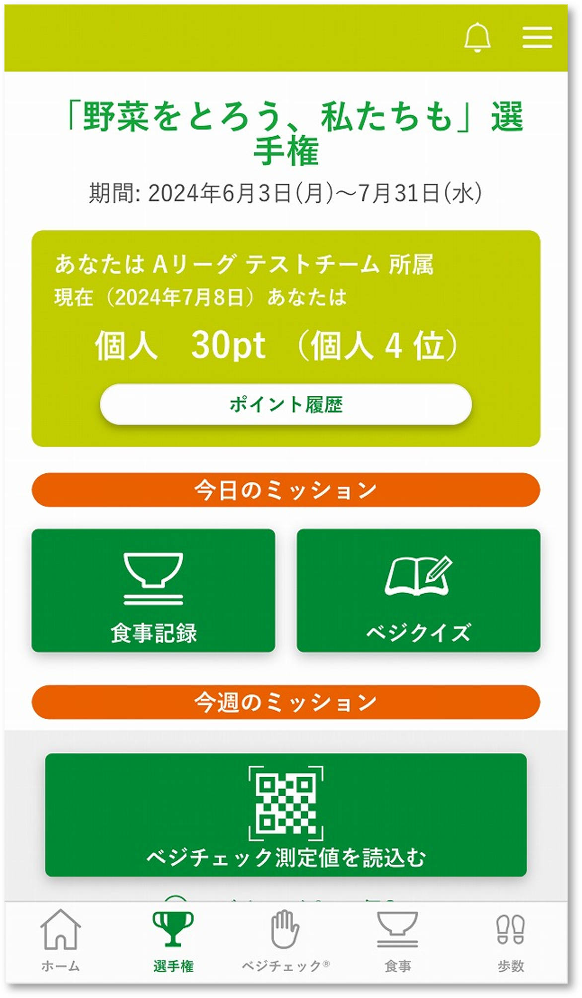 ① 自社アプリを活用した、野菜摂取量を増やす取り組み