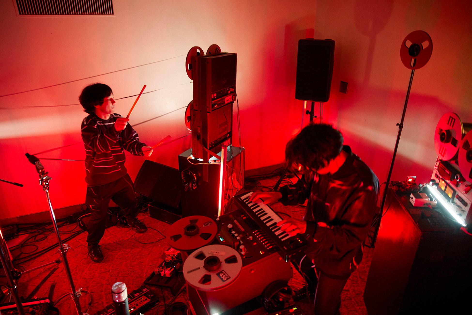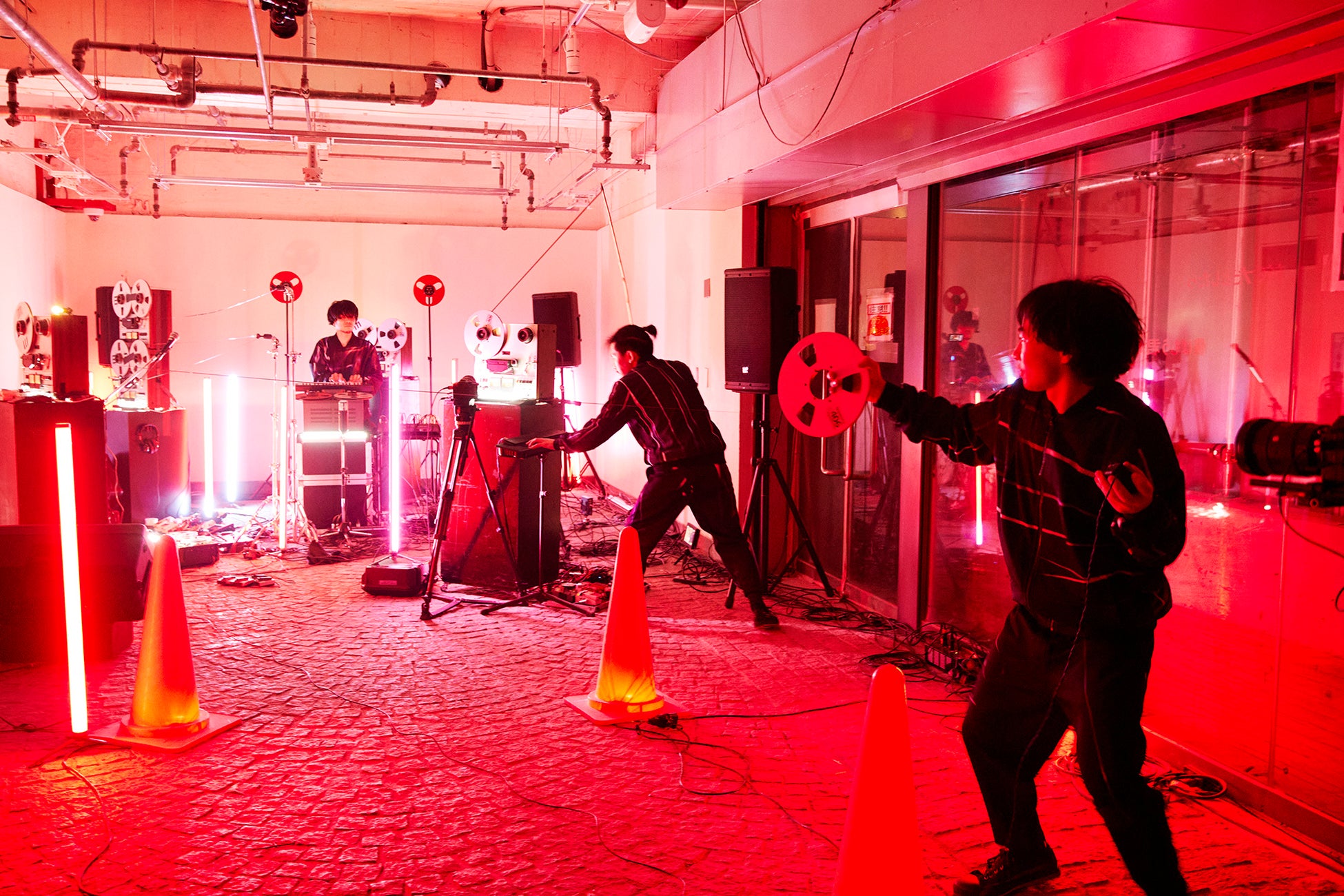 ラストを飾るのはアップテンポの「Space Fushigi part II」。改造楽器のおもしろさもあるものの、3人の演奏能力の高さに改めて驚かされる。万華鏡のように色とりどりのアレンジ、一糸乱れぬアンサンブルがバンドとしての魅力を存分に楽しませてくれるのだ。この曲の最後では、和田と吉田匡のふたりが磁気テープをオープンリールから引き伸ばして暴れまくる。その荒々しいパフォーマンスはマグネティックパンク時代のロックミュージシャン然としたもので、配信時も視聴者から多くの反響を集めた。