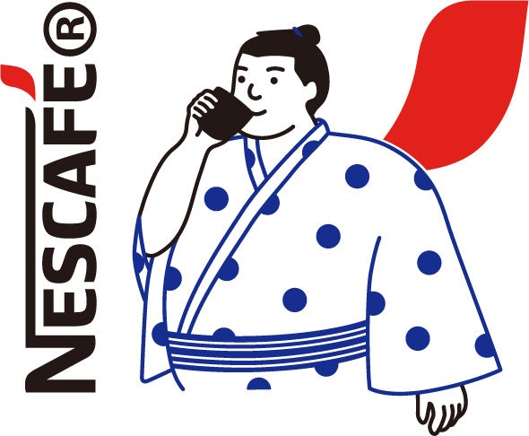 【図柄】赤が目をひく「ネスカフェ」のアクサン(※フランス語で「アクセント」の意味)マークを象徴的に使用しつつ、コーヒーを片手にリラックスタイムを過ごす力士が描かれています。デザインは、ネスレ日本の社員が担当しました。