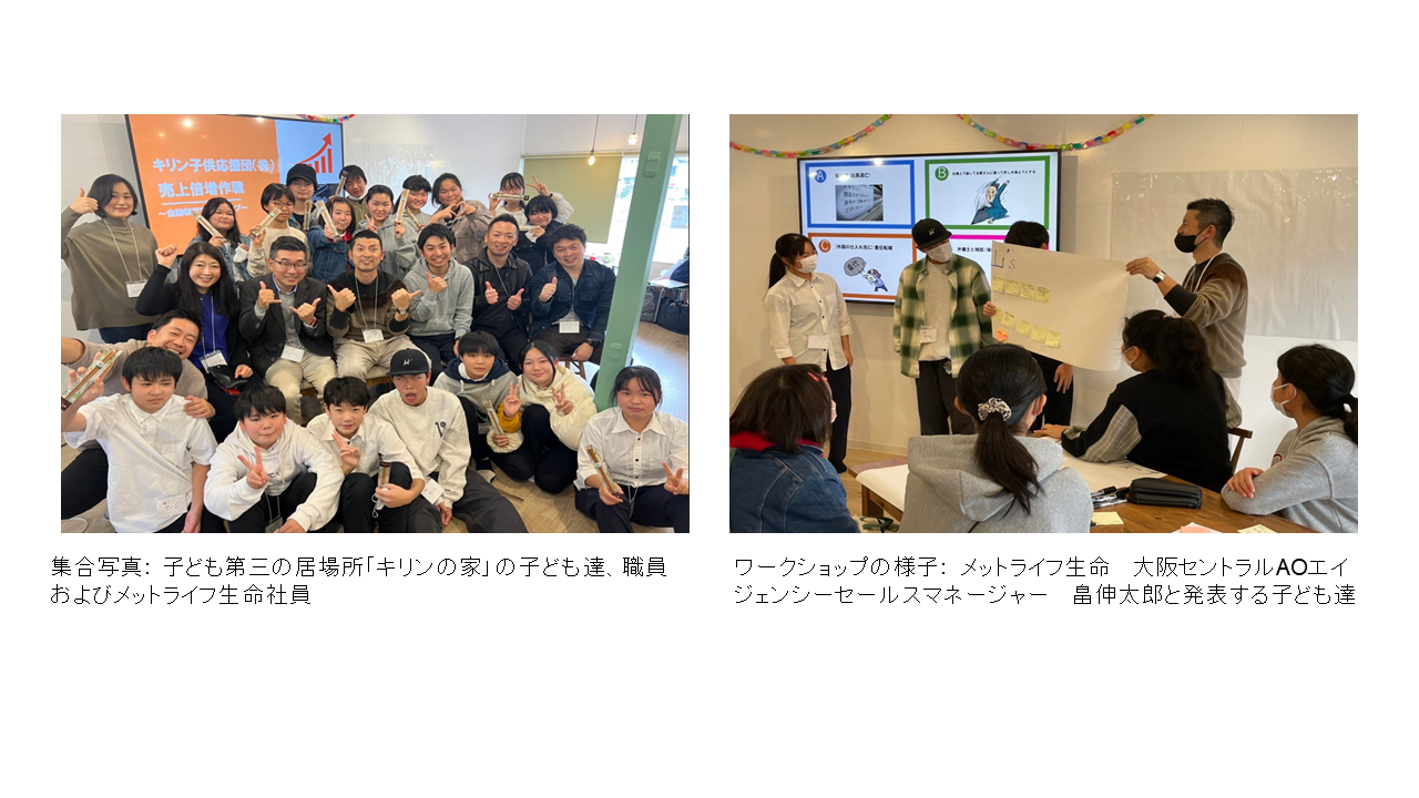 メットライフ生命保険株式会社(代表執行役 会長 社長 最高経営責任者 ディルク・オステイン、以下「メットライフ生命」)と、日本財団(東京都港区、会長 笹川陽平)は、「メットライフ財団×日本財団 高齢者・子どもの豊かな居場所プログラム」*1の一環として、特定非営利活動法人キリンこども応援団(大阪府泉佐野市、代表理事 水取博隆、以下「キリン子ども応援団」)とともに、2023年1月14日(土)に金融教育ワークショップ「お店の売上倍増大作戦!」を開催しました。