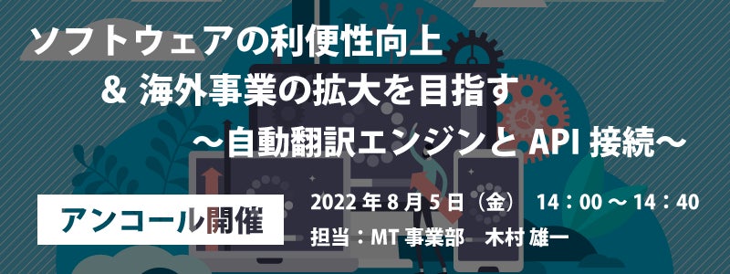 AI自動翻訳のロゼッタ ウェビナー『ソフトウェアの利便性向上&海外事業の拡大を目指す ~自動翻訳エンジンとAPI接続~』8月5日(金)開催