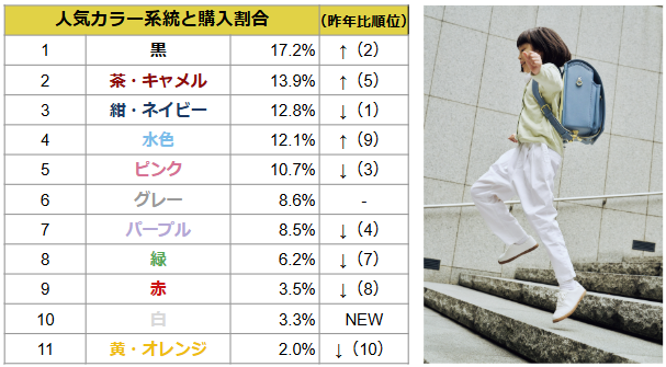 土屋鞄のランドセル、2026年ご入学用人気カラー速報を発表!バリエーション豊富な黒が1位、水色が大幅躍進しパステルカラーの新たな人気色に。
