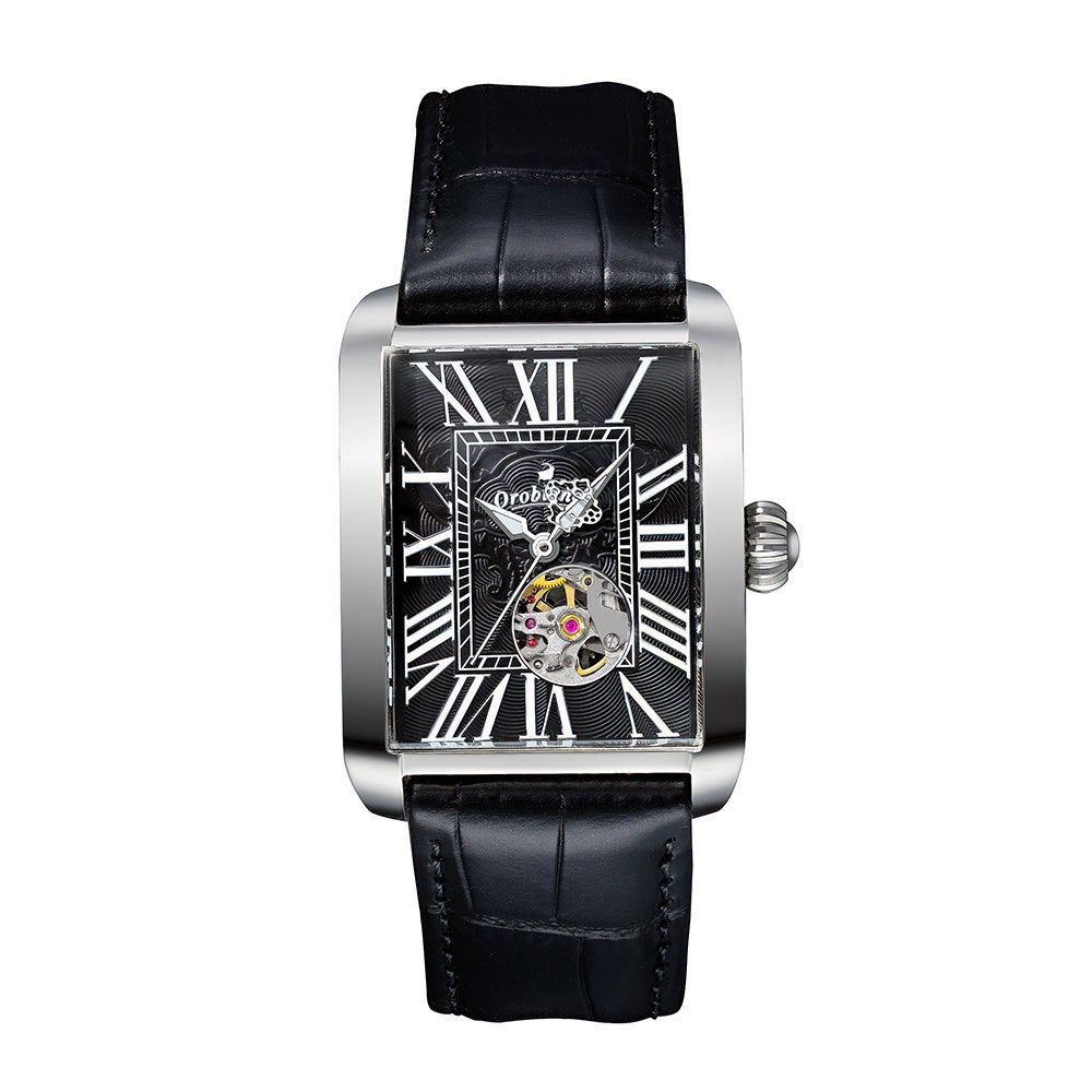 シンプルながらも存在感を放つ、クラシックなトノー型腕時計