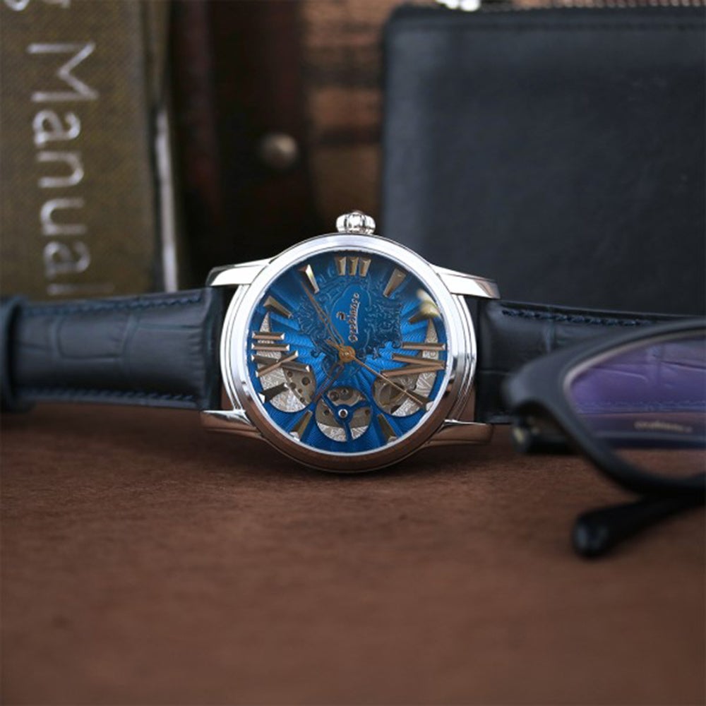 オロビアンコの時計として初めて採用されたデザインの復刻モデル。初代デザインの良い部分を採用し現代風にアレンジしました。文字盤のいたるところにブランドの特徴でもあるペイズリー柄をさりげなく入れることによりよりクラシックでイタリアンなデザインに仕上がりました。大きく開いたペイズリー型のオープンハートが目を引くオラクラシカは、発売以来支持され続けているベストセラーシリーズ。繊細なギョーシェ模様を施した文字盤に浮かぶオープンハートからは、日本製ムーブメントの動きを視認可能。オープンハートに溶け込むように配置されたエンボス加工のブランドロゴ、張り出るように配置された立体的なインデックスなど、シックな装飾性もお楽しみいただけます。