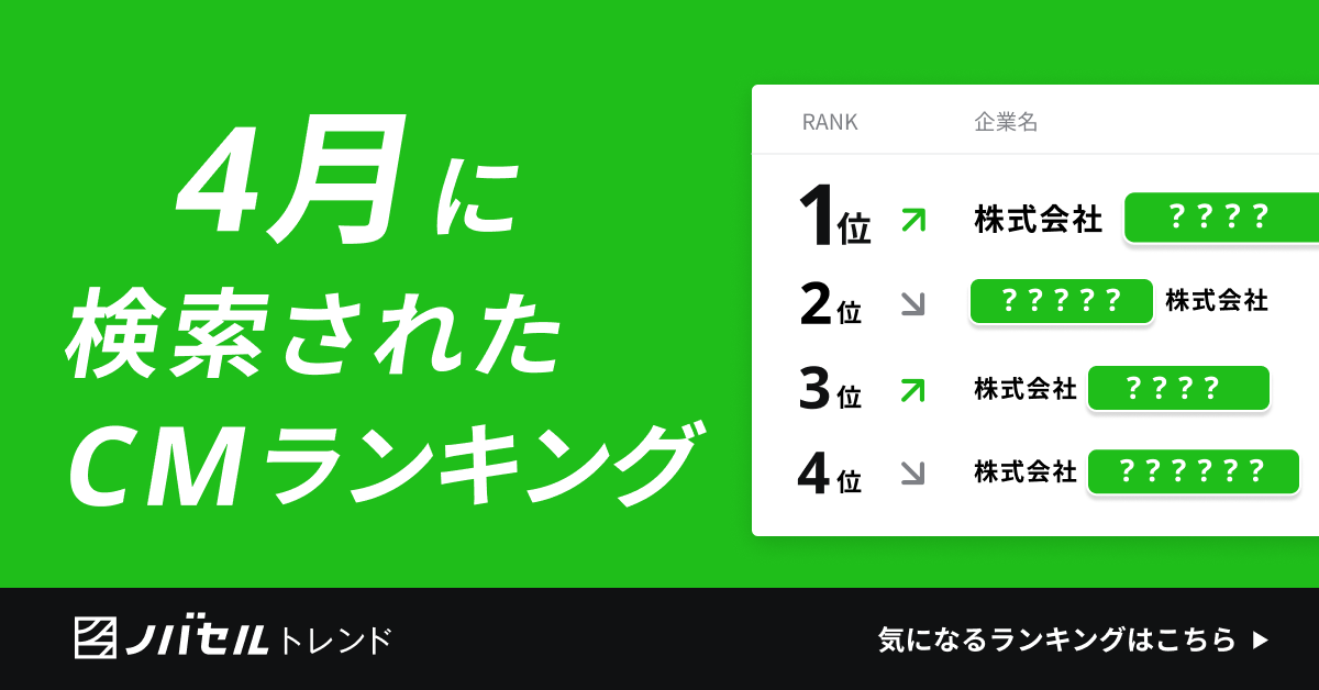 あらゆるテレビCMの指名検索スコアが可視化できる「ノバセルトレンド」にて、2024年4月の指名検索スコア順テレビランキングをご紹介します。