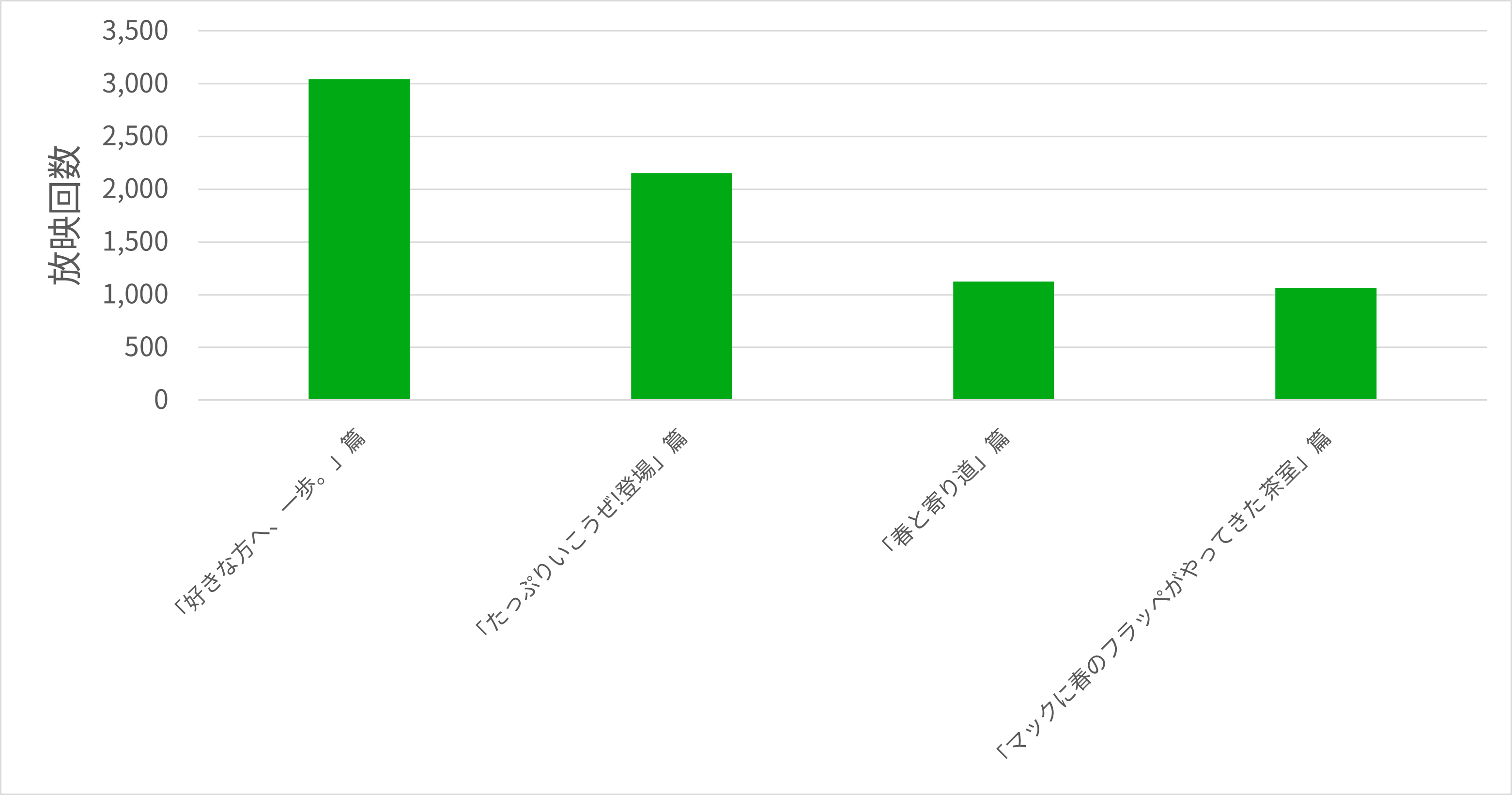 中でもサムライマック®の「好きな方へ、一歩。」篇は4月で最も高い放映回数となっています。