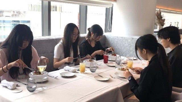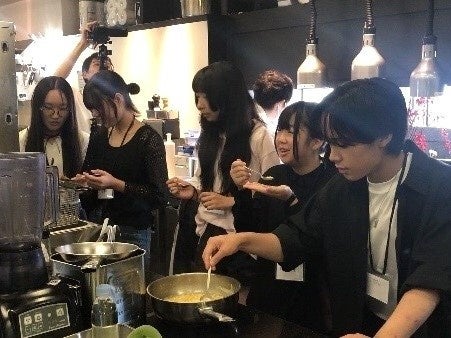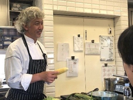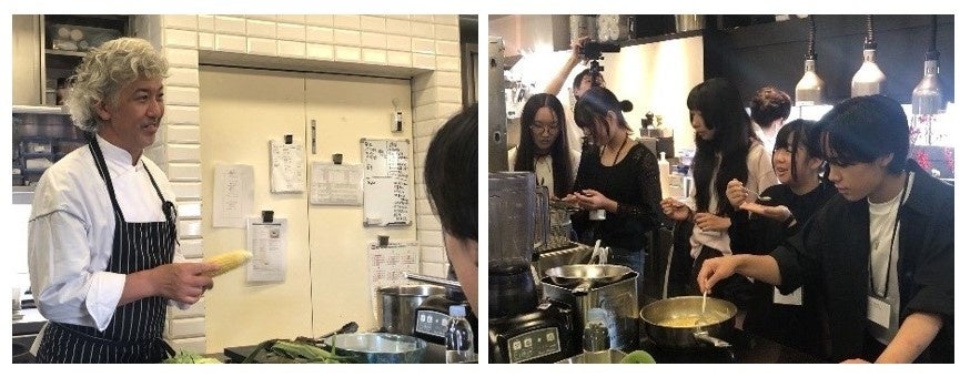 当日は中高校生合わせ5名が参加。事前学習でフィールドワークの実地場所となった北王農林、小笠原農園の野菜を使用し、美味しい食べ方や素材を活かした調理方法を厨房に入り学びました。また、実食の際には熟練のシェフより簡単なレクチャーが行われました。