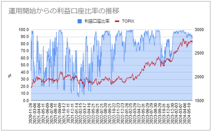 始めたばかりの方も含む2024年5月末時点の利益口座比率は92.5%となりました。