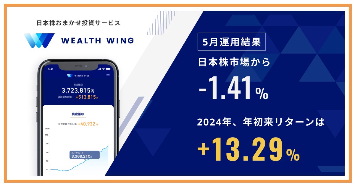 Finatextグループの日本株おまかせ投資サービス「Wealth Wing(ウェルスウイング)」、2024年5月の運用結果は日本株市場を1.41%下回る