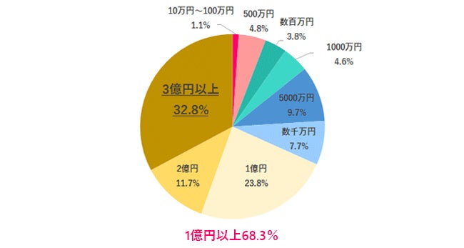 宝くじが大当たりしたら今の仕事を辞めると答えた人に、どの程度当たったら仕事を辞めるかを聞いたところ1位「3億円以上」32.8%、2位「1億円」23.8%、3位「2億円」11.7%となりました。「1億円以上」と答えた人は約7割となっており、「1億円」が仕事を辞めるボーダーラインになっていることがわかります。