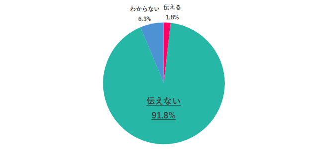 宝くじが当たって会社を辞めることになったら、退職理由として宝くじに当たったことを職場の人に伝えるかどうか聞いたところ、「伝えない」が91.8%となりました。大多数の人が宝くじが当たったことは周囲に隠すことがわかりました。