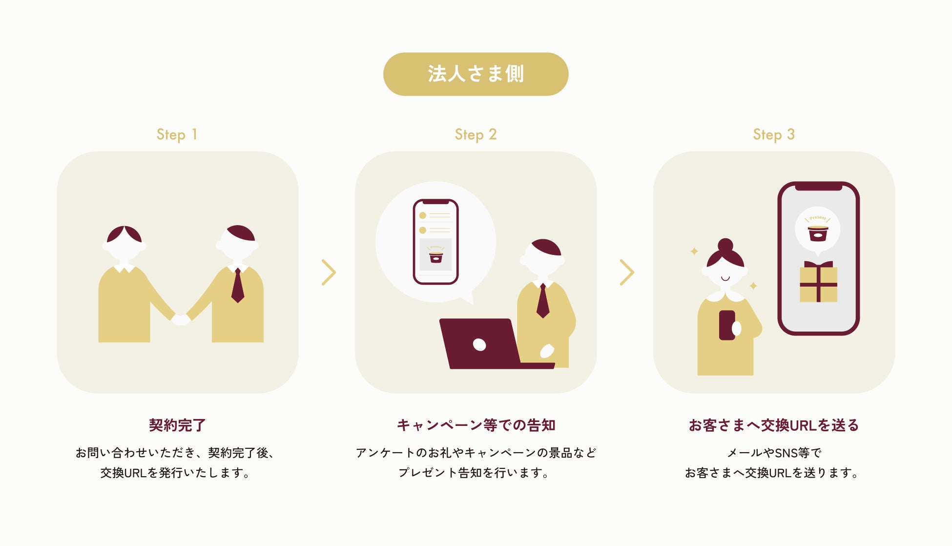 専用サイトからお申込みいただき、契約完了後、引き換えURLを発行します。