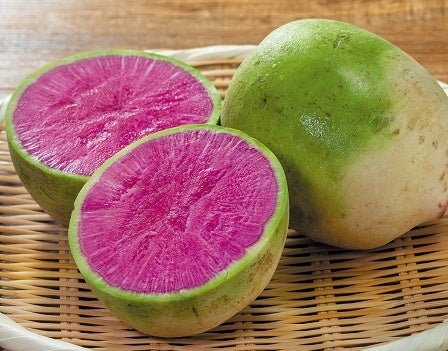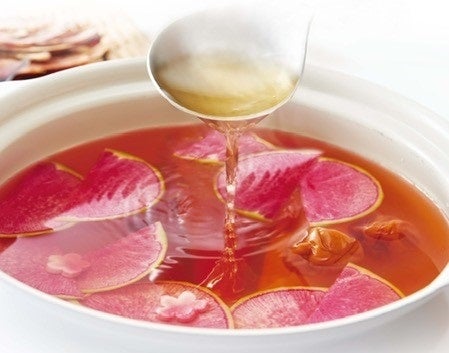 中国ではお祝い料理で使われるほど色鮮やかな紅心大根。きれいなピンク色がだしを華やかに彩ります。