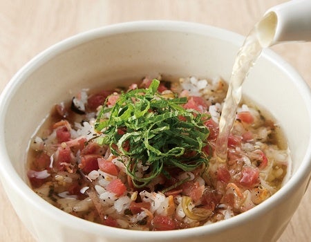 ちりめんじゃこの香ばしさとカリカリ梅の酸味がクセになる。だしをかけてお茶漬けにしても