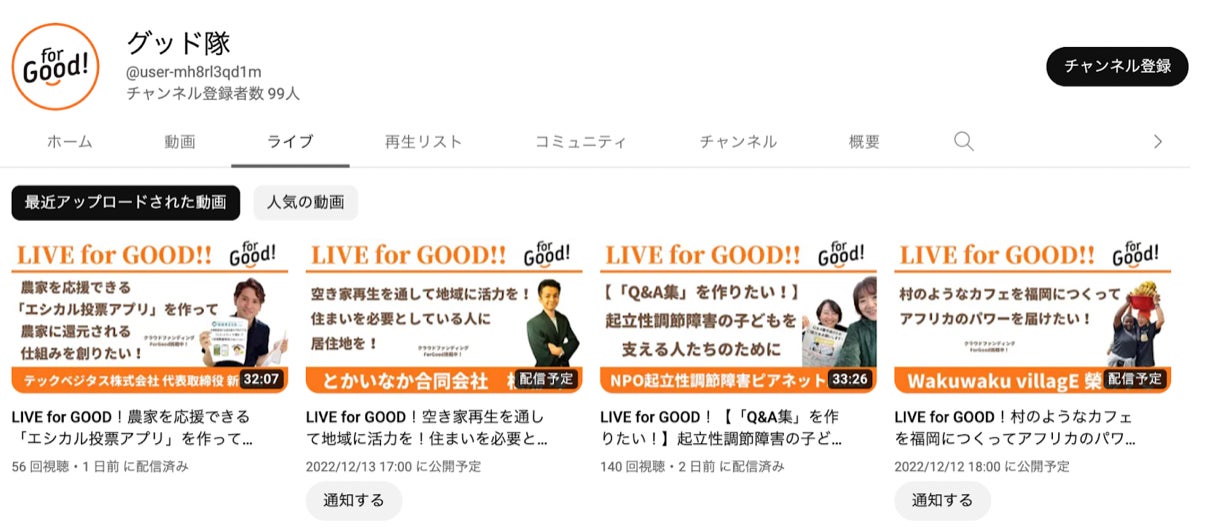 For Goodのグッド隊として、プロジェクト実行者をインタビューするLIVE FOR GOODを運営中