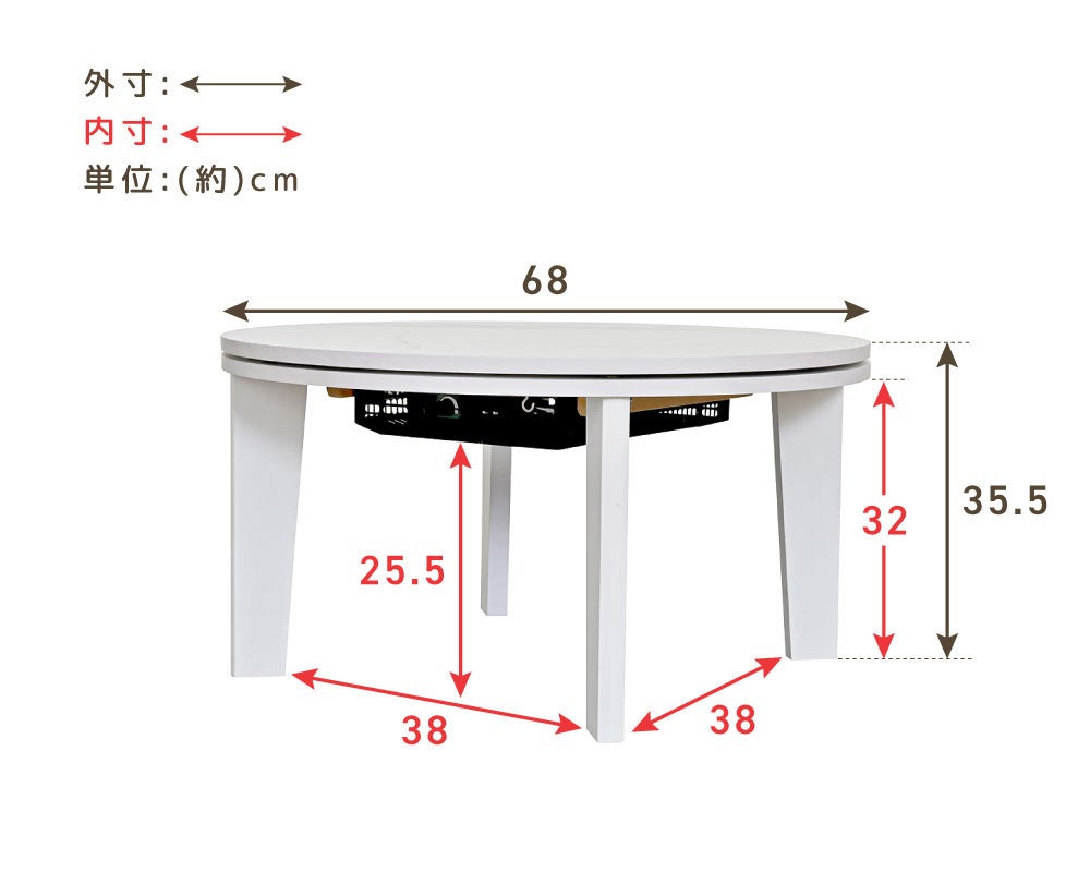 直径68cm、高さ35.5cmで一人暮らしにぴったり
