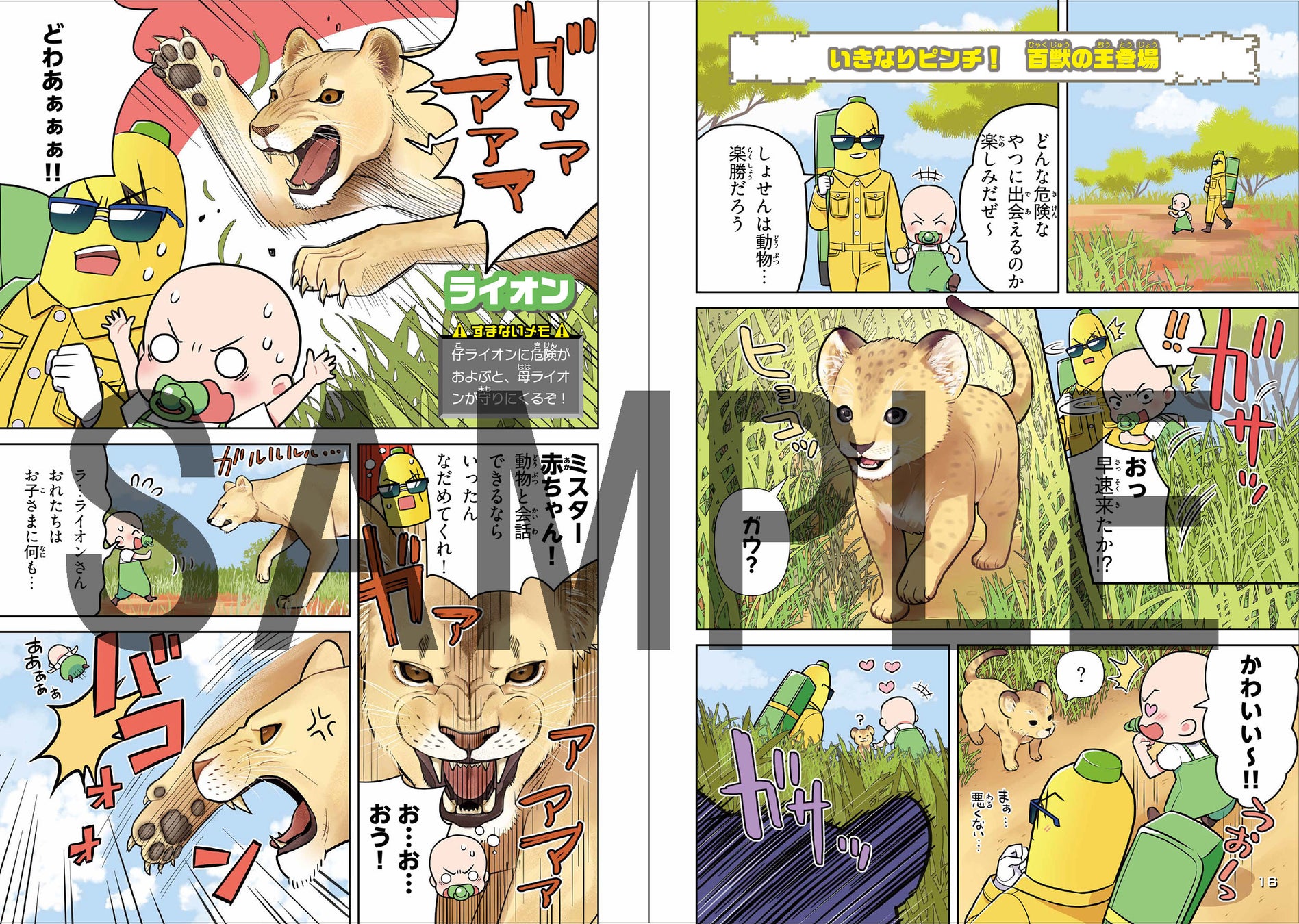 本書では、すまない先生たちの世界に迷い込んだ危険生物たちを捕獲するミッションに、すまないスクールのメンバーたちが挑みます。ライオン、トラといった陸上の屈強な危険生物から、キングコブラ、オオヒキガエルといった毒をもつ生物、さらにサメ、デンキウナギなどの海水・淡水の生物まで、100体以上のさまざまな危険生物が登場します。