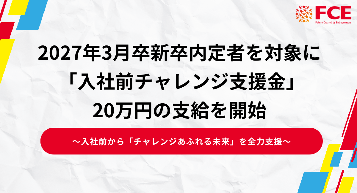 2027年3月新卒内定者を対象に「入社前チャレンジ支援金」20万円の支給を開始【FCE】