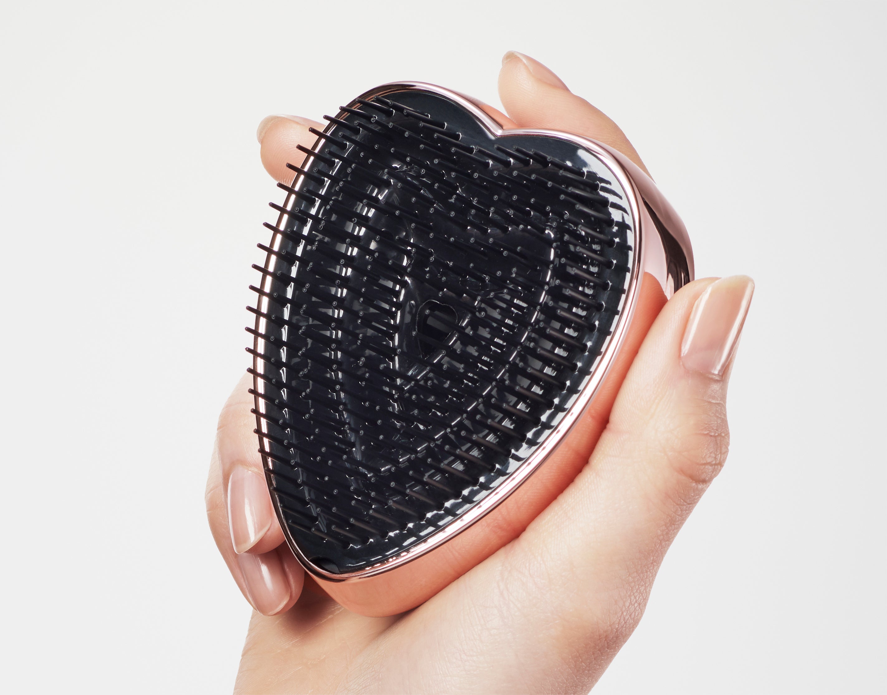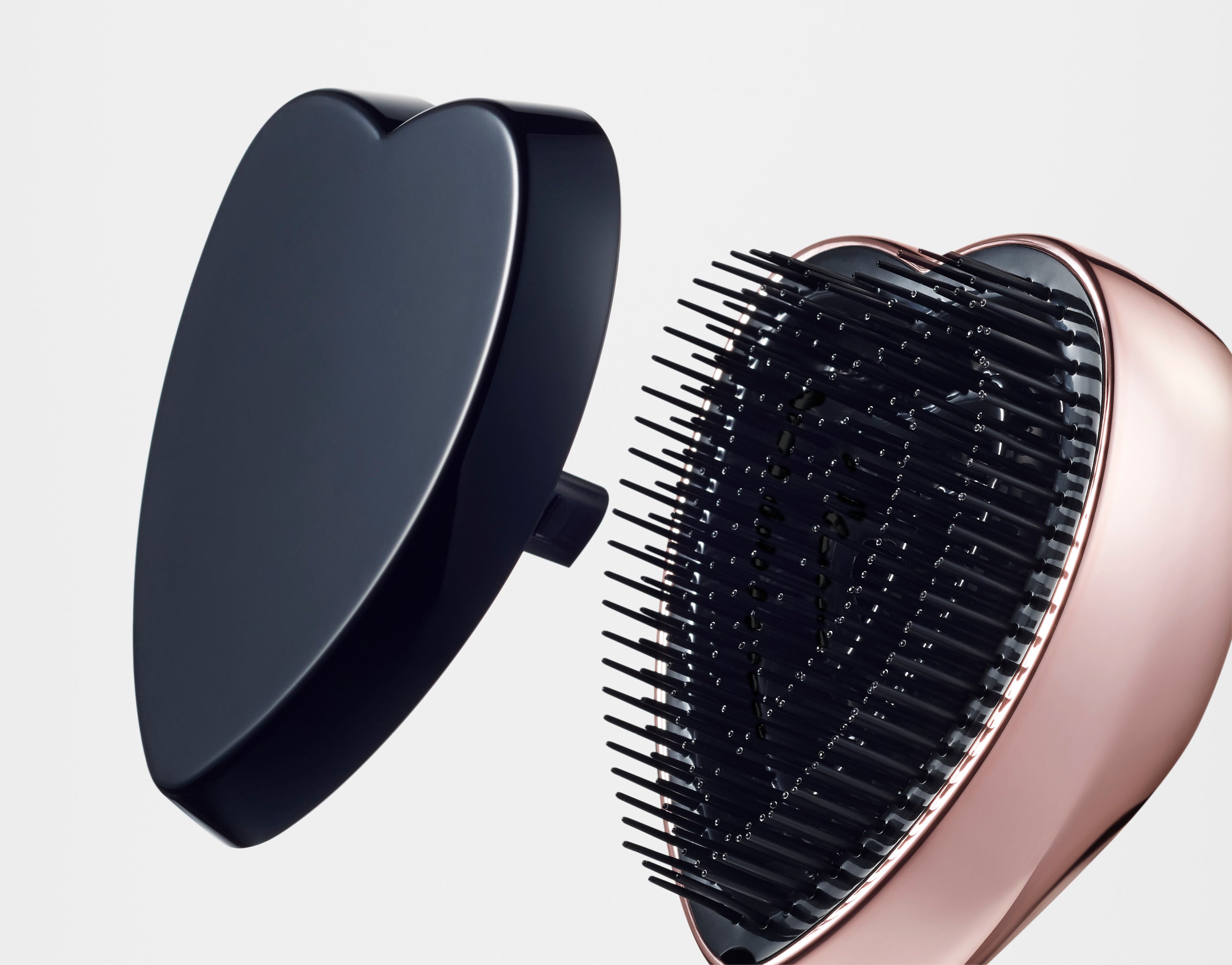 3.かわいさと握りやすさを両立したハート形状で自然とブラシにかかる力を分散。髪にかかる負担を最小限に抑える。いつでもどこでも持ち運べるカバー付き。