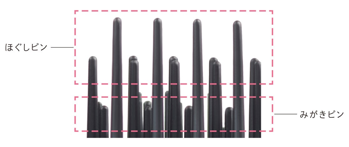 2. ピンの先端を加工し、頭皮を程よく刺激。髪だけでなく頭皮も同時にケア。さらに帯電防止剤を配合。