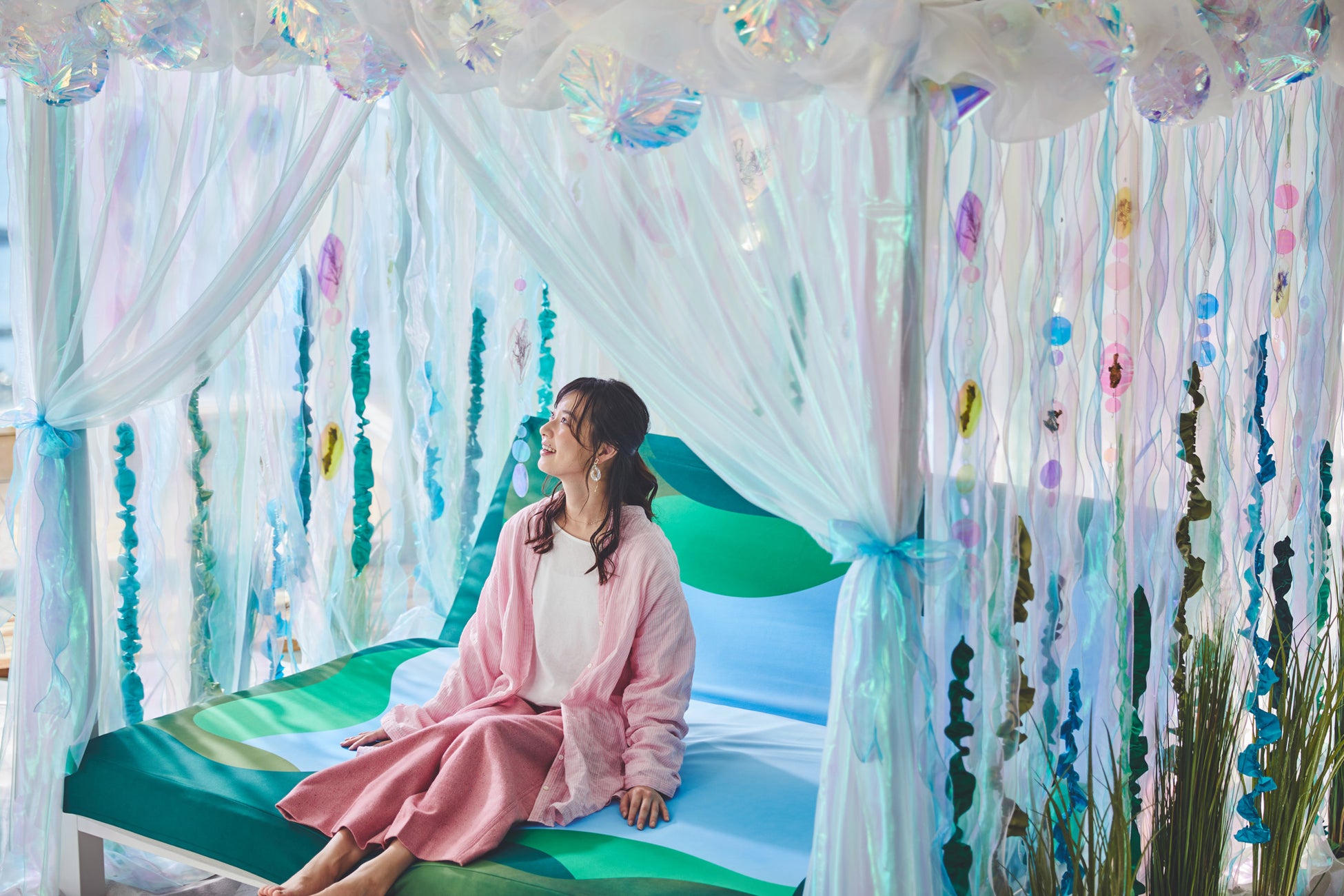 ソラノビーチ Books&Cafeの店内に、まるで海の中に咲く花のように色鮮やかで美しい本物の海藻を活かした装飾を設えます。窓や天井には海藻おしば(*3)を使用した「海の花モビール」や、本物の海藻の立体的な形の美しさを楽しめる「海の花ハーバリウム」が登場。さらに今回は、海の生きもののゆりかごとも呼ばれている藻場(*4)をイメージしたカバナ席「藻場席」を新たに設えます。藻場席で横になり魚になりきって、揺らめく海藻を見上げ、海の中でのお花見気分を楽しめます。