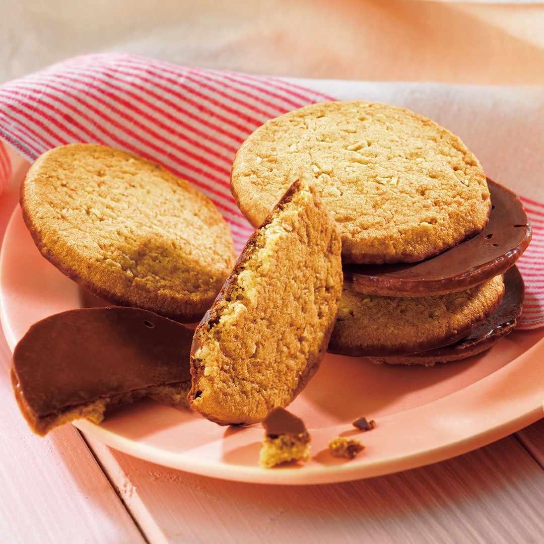 オートミール、小麦全粒粉や小麦粉を使って焼き上げたざくざく食感のクッキーの片面に、チョコレートをコーティング。毎年人気のバレンタイン限定クッキーです。