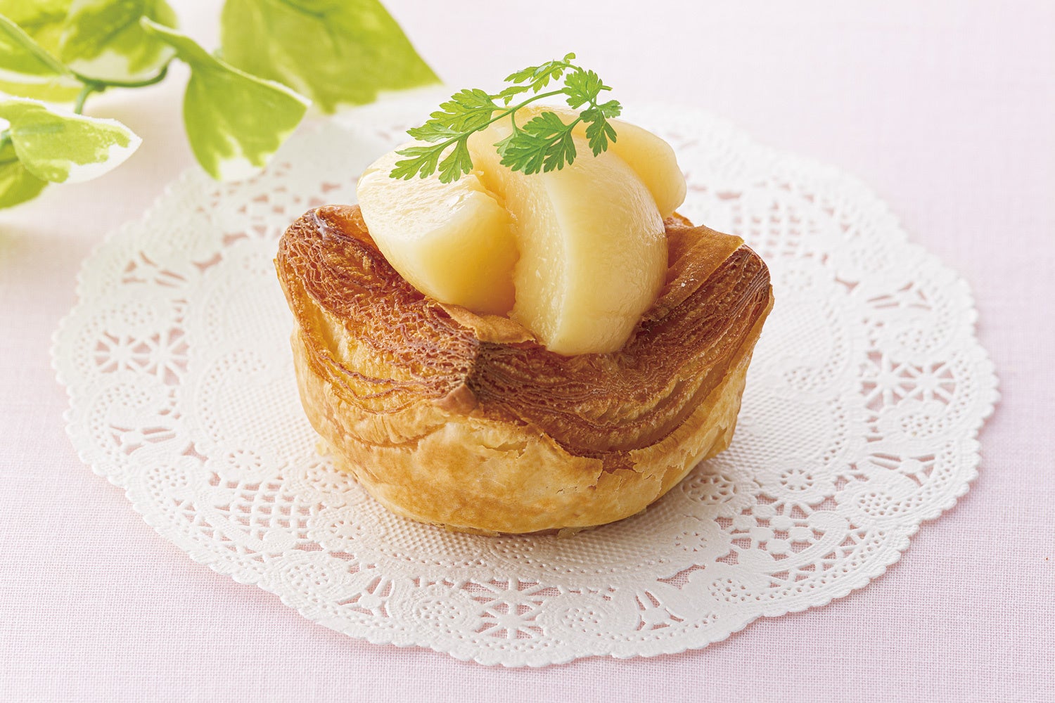 ヨーグルトクリームの上に桃を乗せ、デニッシュ生地で焼きました。暑い季節にピッタリな、爽やかな食感をお楽しみください。
