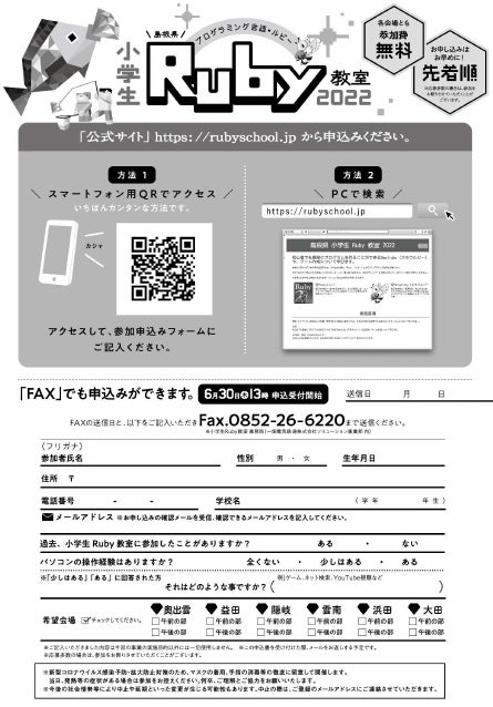 本教室は、県内の子どもたちに、早い段階でプログラミングを体験してもらうことにより、ITに興味・関心を持ち、将来を担うIT人材の育成につなげることを目的としています。
