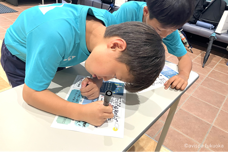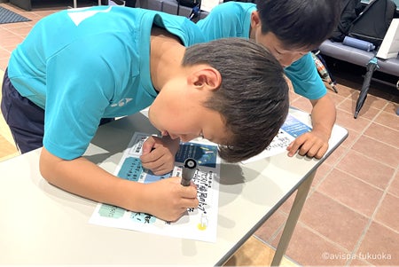 総勢124名のアビスパ福岡アカデミー生へ、アビスパ福岡の選手直筆の応援メッセージ付き七夕カードのプレゼントと当社の商品を進呈しました。さらに七夕カードには、自分の目標を常に意識して行動してほしいという想いを込め、叶えたい夢や願い事を書いてもらいました。