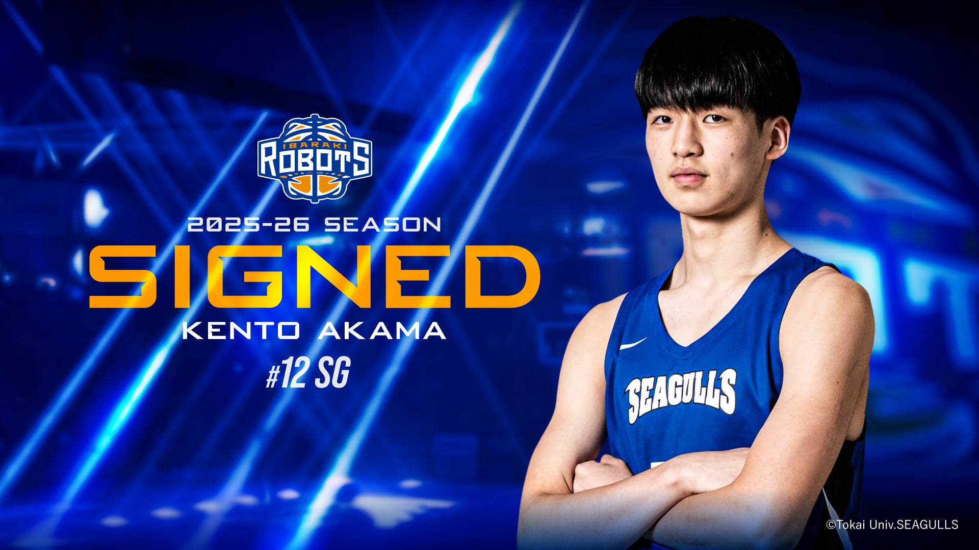 茨城ロボッツでは、1月29日(木)に行われた「B.LEAGUE DRAFT 2026」において、1巡目2位で指名した赤間賢人選手をりそなグループB.LEAGUE 2025-26シーズンにおいての特別指定選手として登録いたしました。