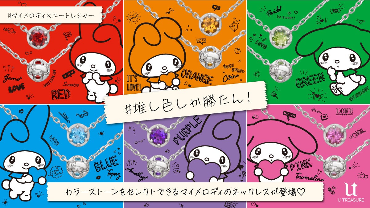 【サンリオキャラクターズ】マイメロディ 推し色ネックレス。6種類のカラーストーンから選べるリバーシブルデザイン。3月31日(木)まで予約受付